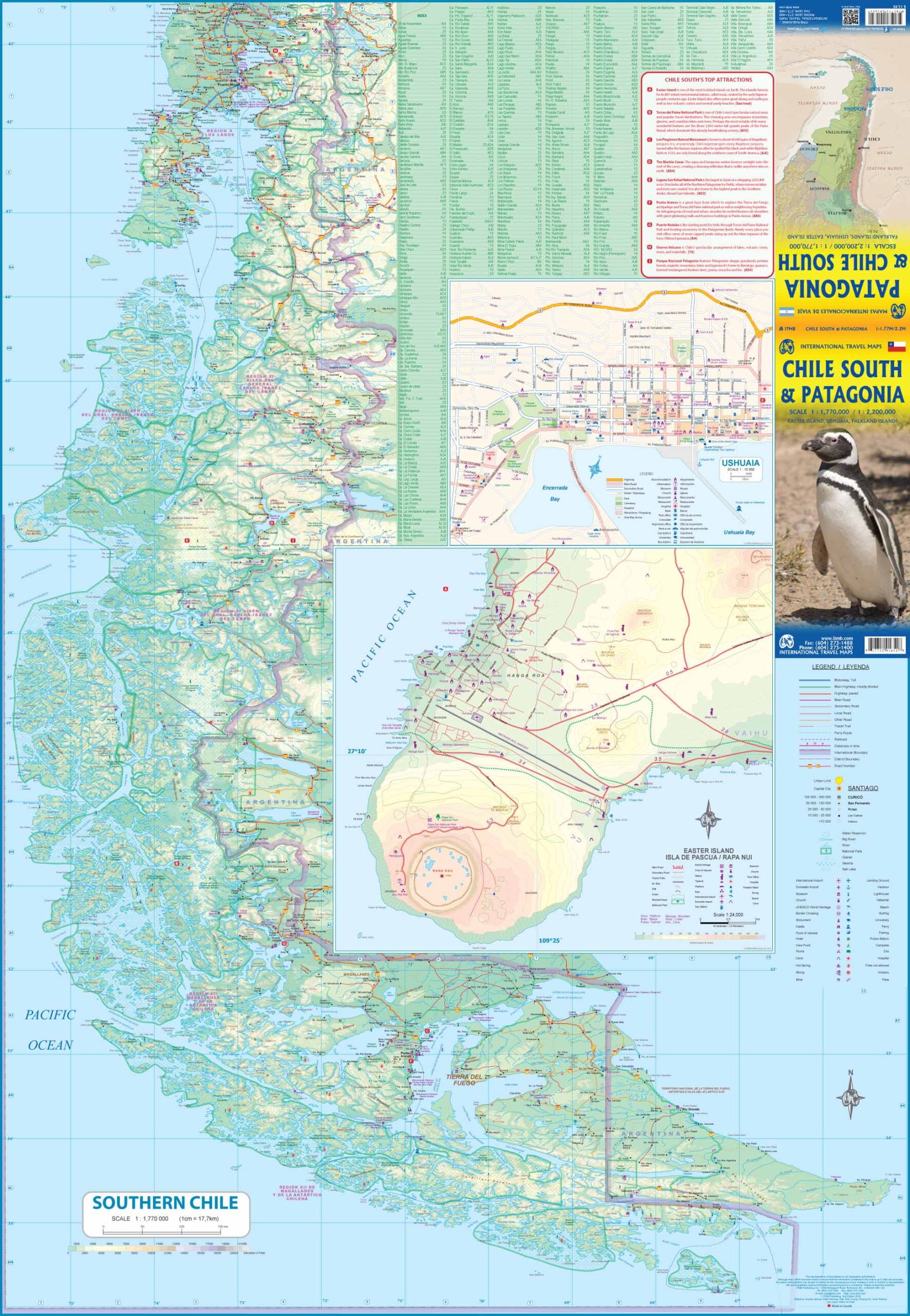 ITMB publishes more detailed, separate maps of Easter Island and of Tierra del Fuego.